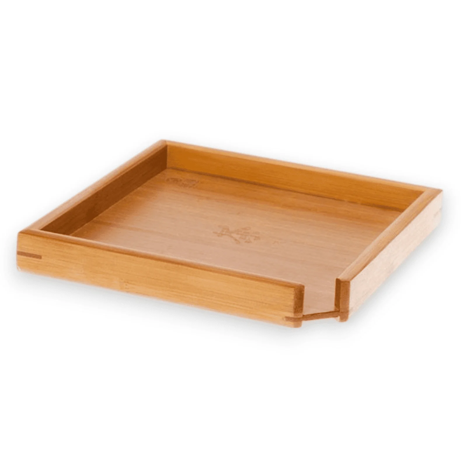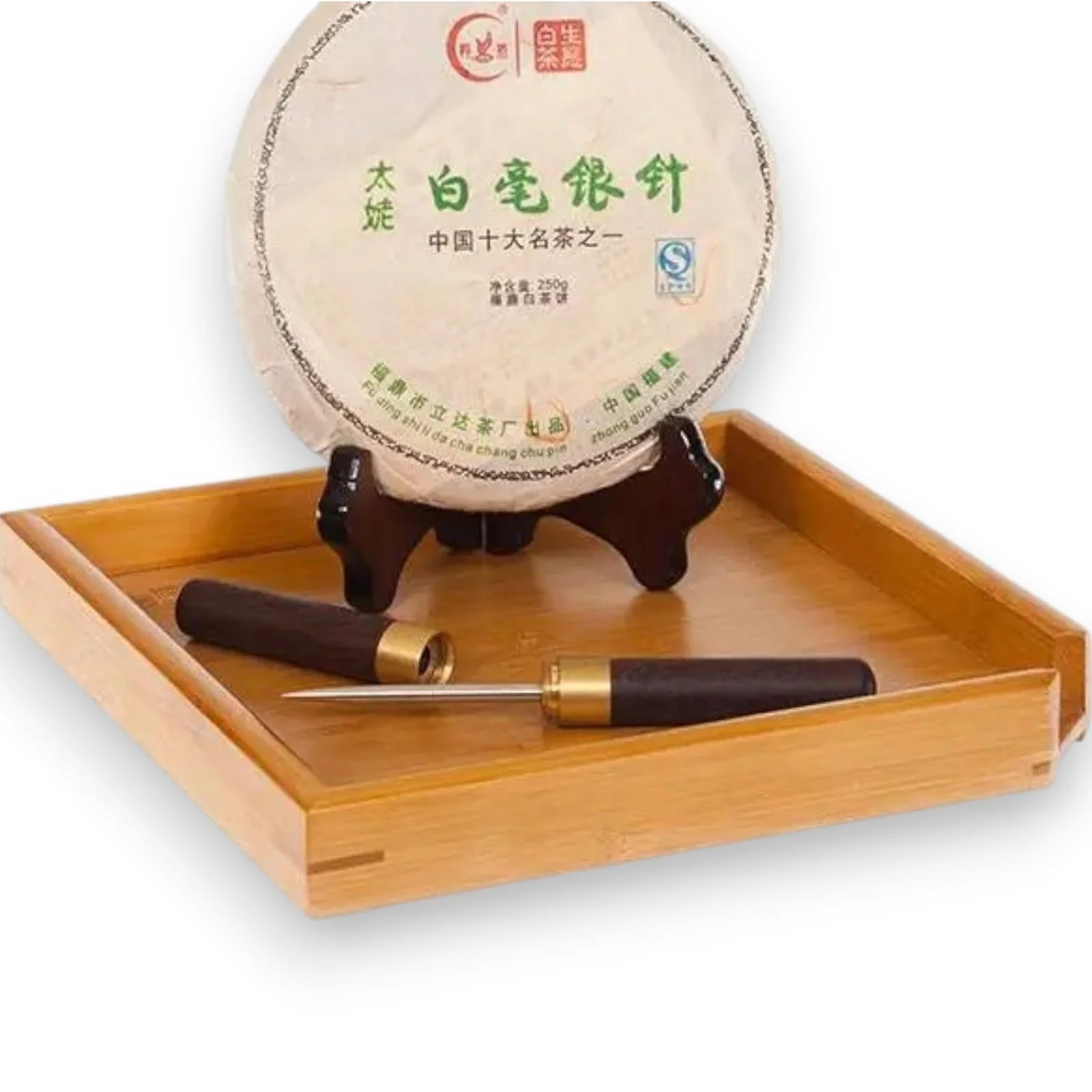 Švara ir patogumas arbatos ceremonijos metu Aukštos kokybės brandinta Pu-erh arba baltoji arbata dažniausiai parduodama supresuota į tvirtus diskus („blynus“). Norint ją paruošti, tenka naudoti arbatos ylą ar peiliuką, kad atskeltumėte lapelius. Šio proceso metu lapeliai dažnai byra ir trupa. Šis bambukinis padėklas išsprendžia šią problemą. Tiesiog padėkite arbatos diską į vidų ir smulkinkite. Visi trupiniai liks padėkle, o dėka sumaniai suprojektuoto atviro kampo, juos lengvai ir švariai subersite į arbatinuką ar Gaiwan indą.
