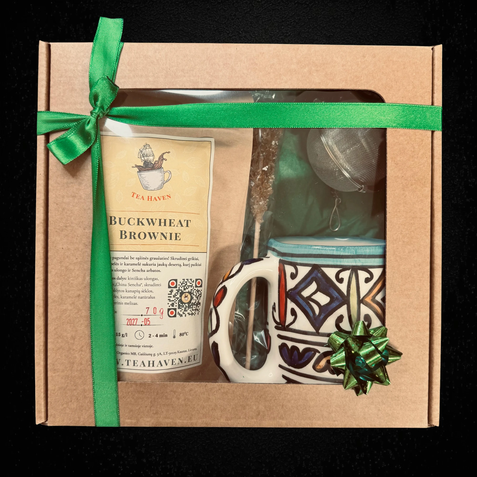Dovanų rinkinys „Maroko spalvos“ su rankų darbo puodeliu ir desertine arbata