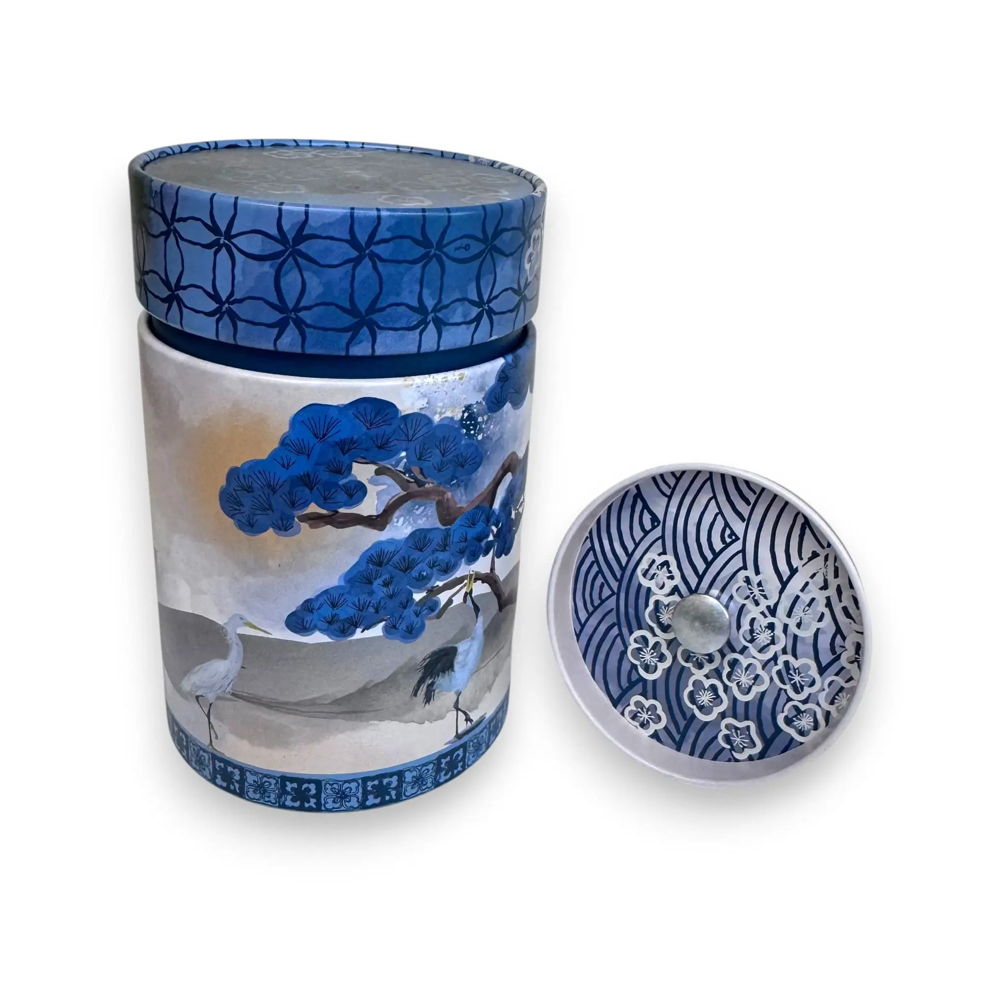 Saugokite savo arbatą stilingai. Šis rytietiško stiliaus indelis arbatai puoštas Japonijos gervių ir pušų motyvais. Turi sandarų dvigubą dangtelį, kuris ilgai išlaiko arbatžolių aromatą ir šviežumą.