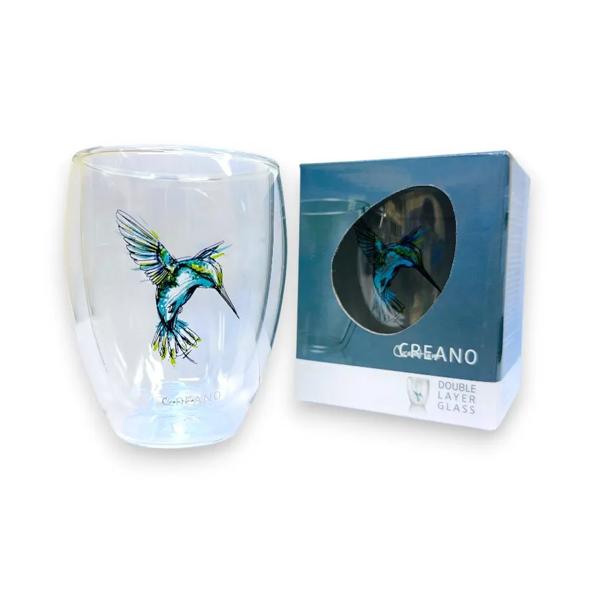 Amžinas grožis (Inner Print): Kolibrio piešinys uždėtas ant vidinės stiklo sienelės. Tai reiškia, kad net po daugybės plovimų indaplovėje spalvos išliks ryškios, o piešinys nenusibraižys.
