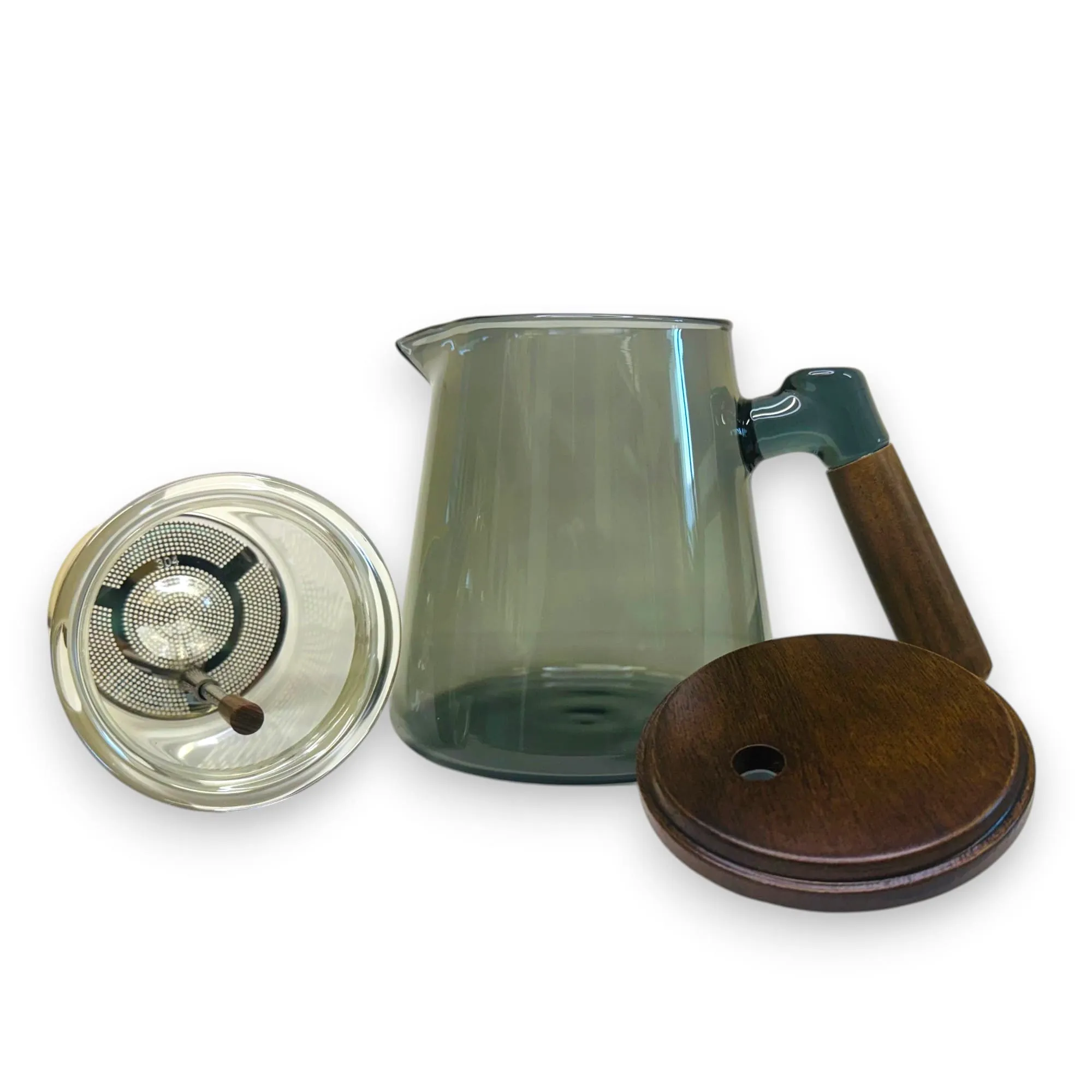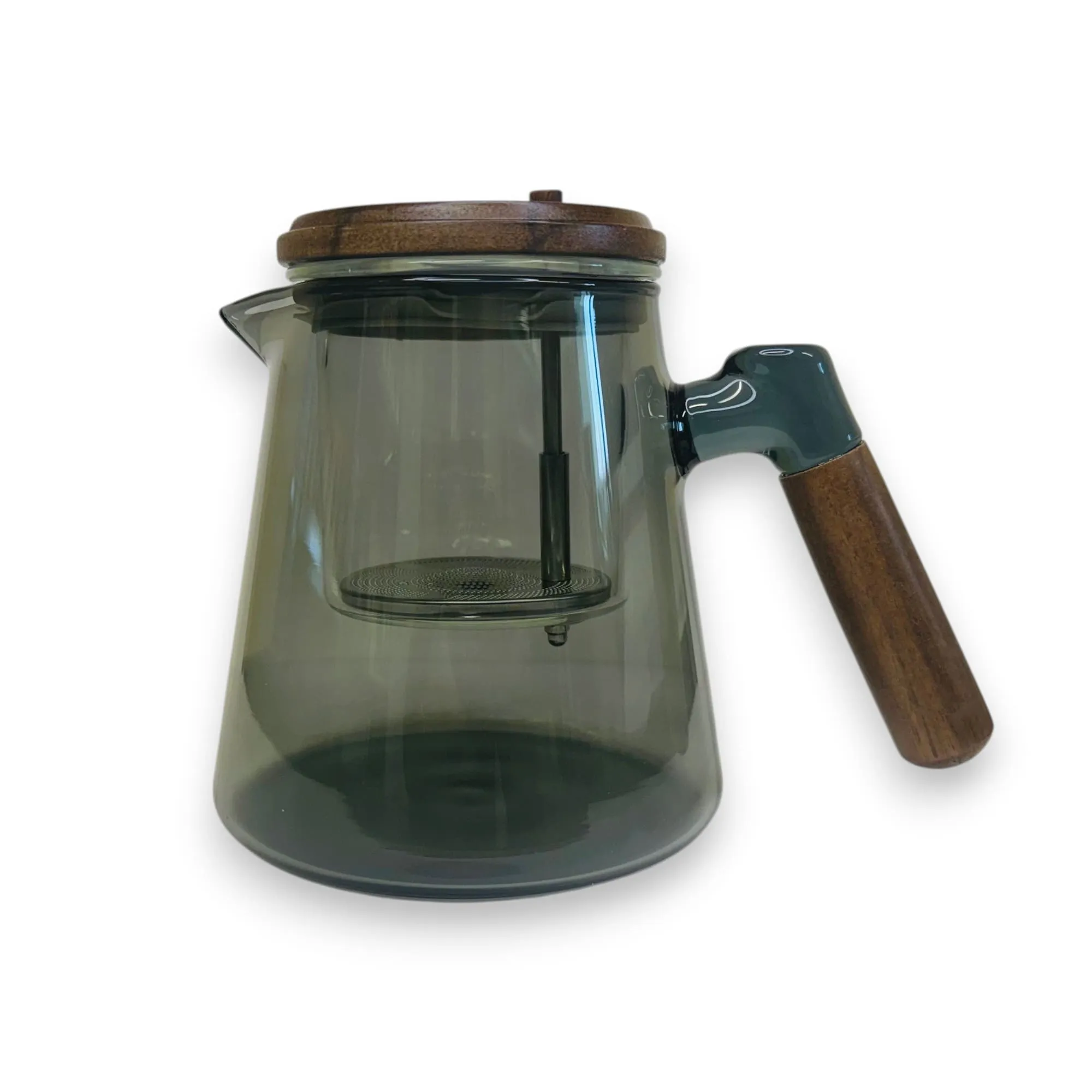 Stiklinis arbatinukas su mygtuku „Lodge“ ir medine rankena
